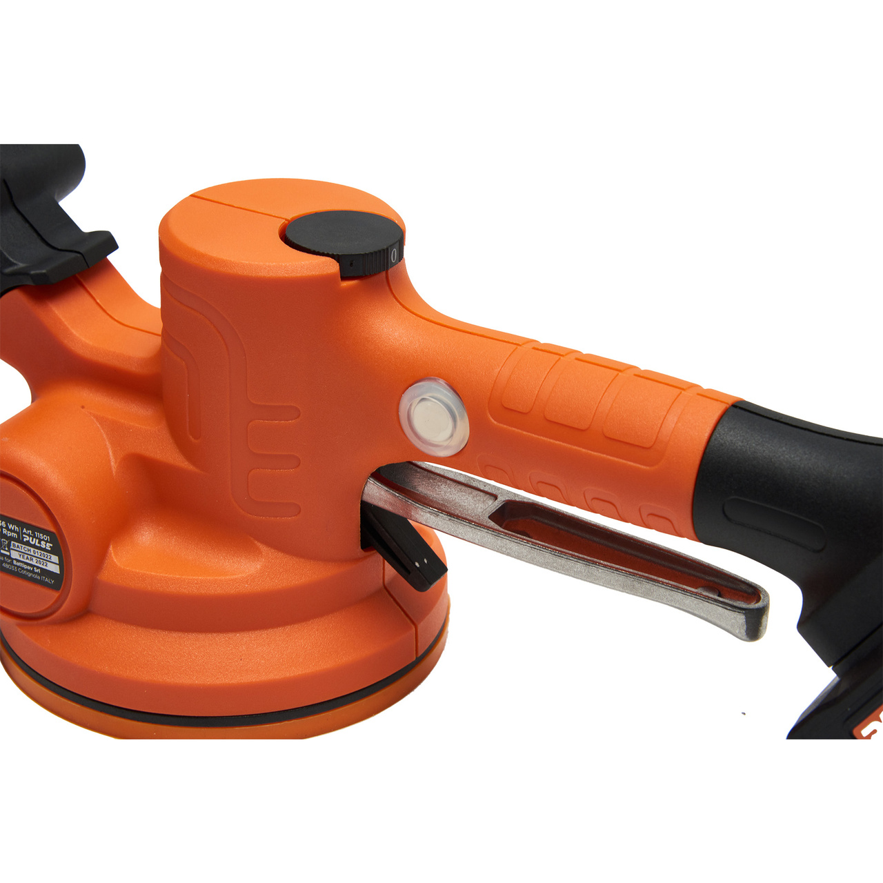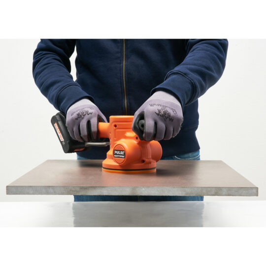Pulse plattvibrator är utrustad med sugkopp där man aktiverar vacuumet med en praktisk spak under handtaget. Pulse lyfter plattor upp till 25 kg och har 5st individuella vibrationsnivåer för bästa resultat i förhållande till plattans tyngd. Det främre handtaget är gummiupphängt och flexibelt för en perfekt vägledning av plattan som ska sättas. Vibrationerna i Puls startas genom att aktivera en IP65-klassad brytare på handtagets vänstra sida